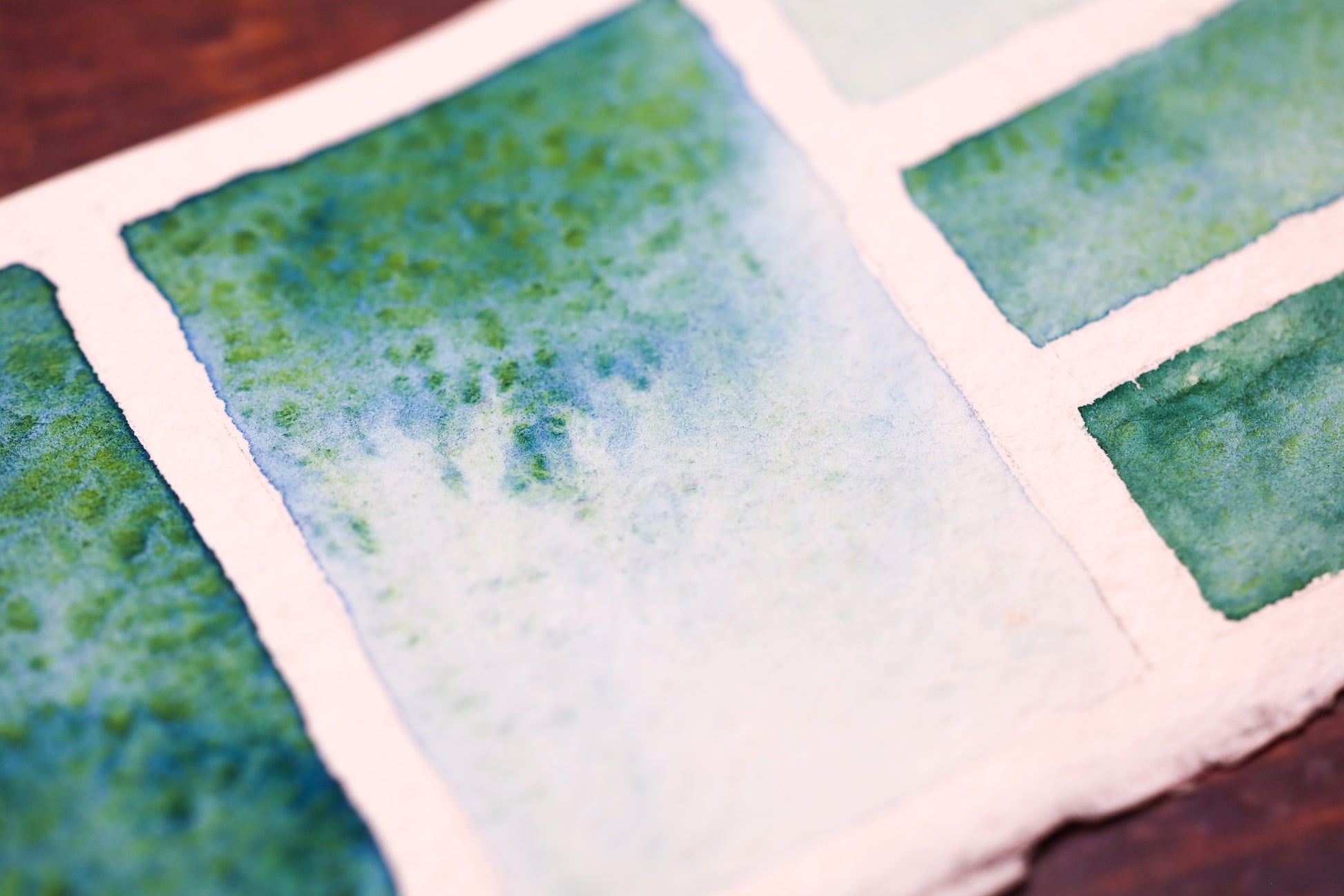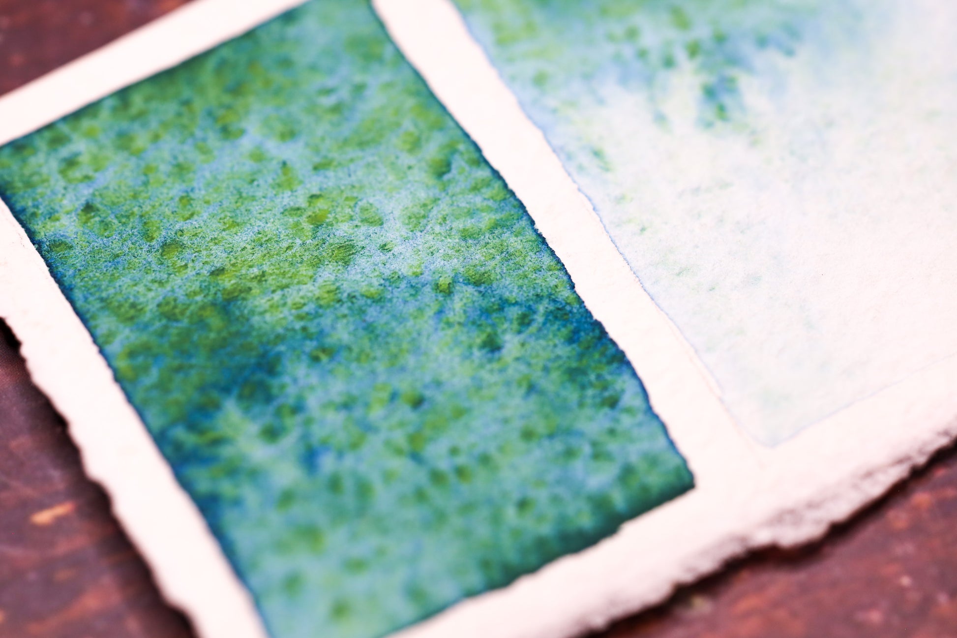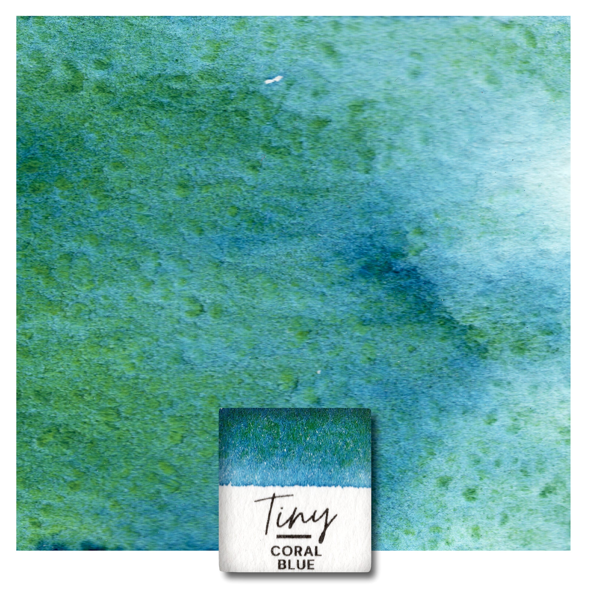 Le Bleu Corail (Coral Blue) est une peinture aquarelle ultra-granuleuse. Elle contient un mélange de deux pigments aux propriétés séparatrices. Cette couleur se sépare et se granule en bleu et vert.
